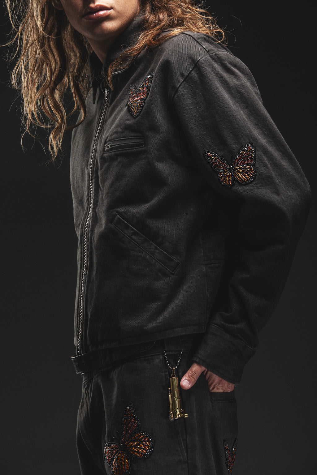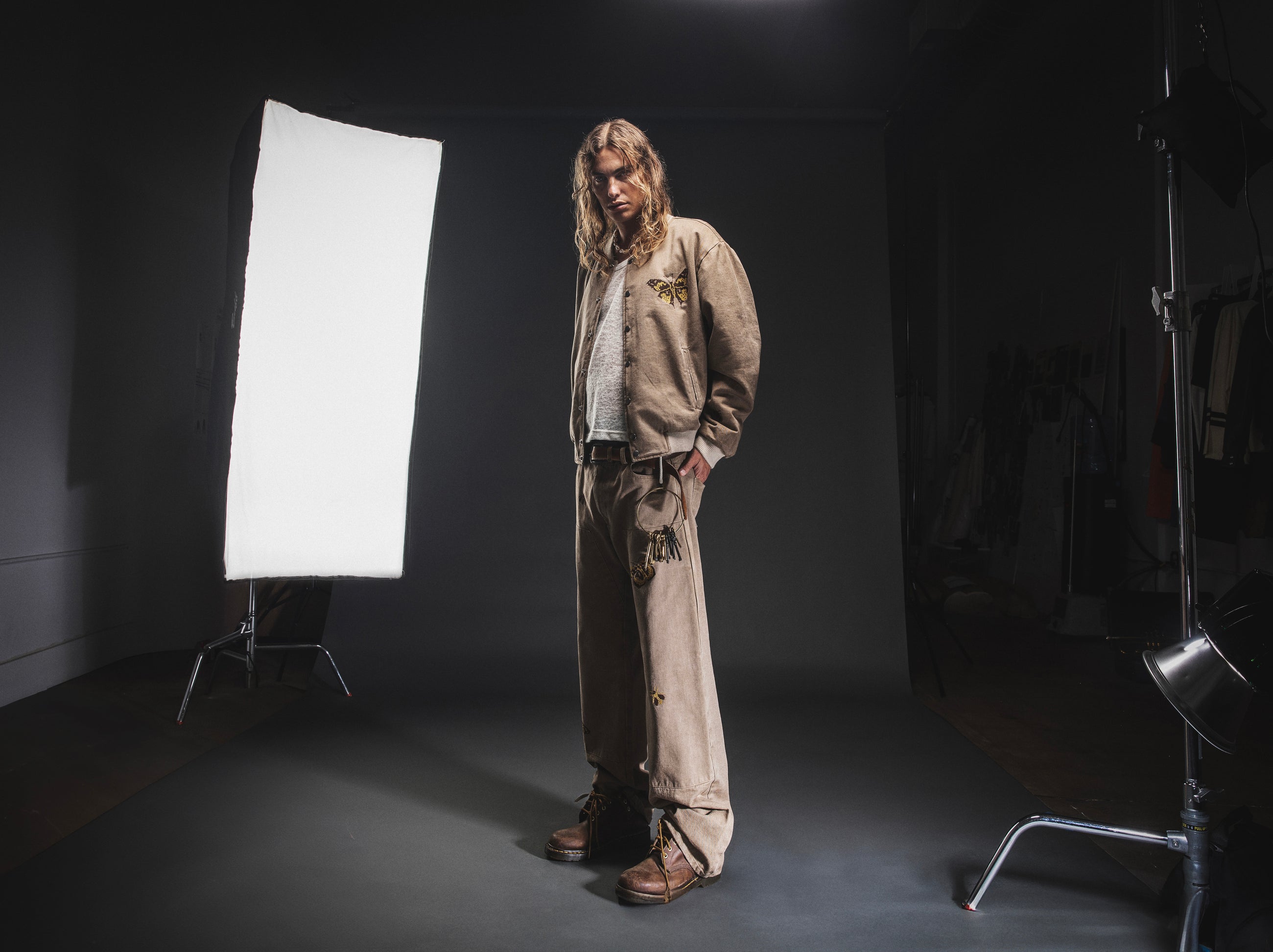 AW25 is built on LA’s unique style. The just rolled out of bed uniform that’s equal parts effortless and subversive. Wide trousers drag the pavement, hoodies hang loose over sheer knits, leather jackets are thrown on like an afterthought. It’s a mash-up of genres, grunge, surf, skate, and stoner all colliding into something unbothered but sharp.
